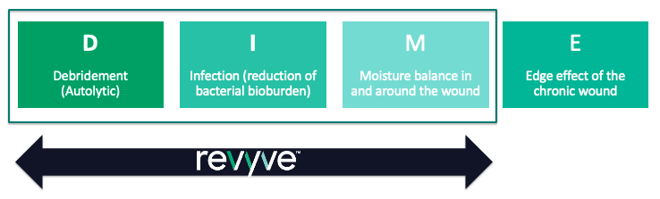 revyve® Antimicrobial Wound Gel addresses the first 3 steps in the DIME wound healing framework